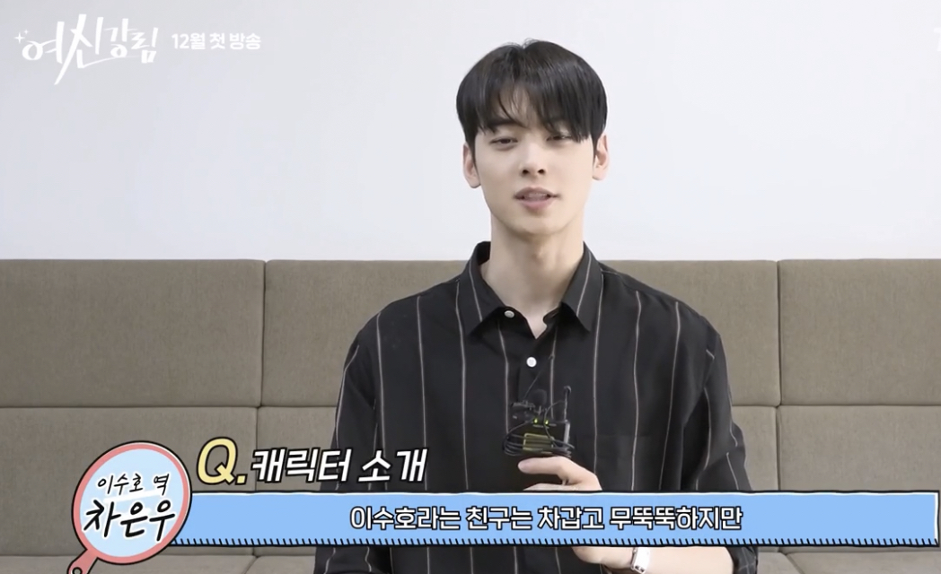 남자 주인공 차은우는 극중에서 이기적인 유전자를 탑재한 차갑고 무뚝뚝한 이수호 역으로 등장하며, 겉으로는 그렇게 보여도 알고보면 굉장히 배려심이 깊고 따뜻한 마음을 가진 전교 1등의 성적과 준수한 외모를 가진 냉미남 입니다.
